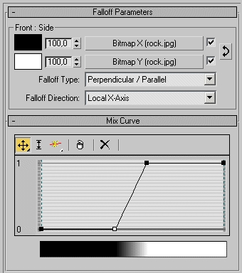 texture. All "intermediate" faces will receive a mix between "Bitmap X" and "Bitmap Y" depending on [Falloff] mix curve.