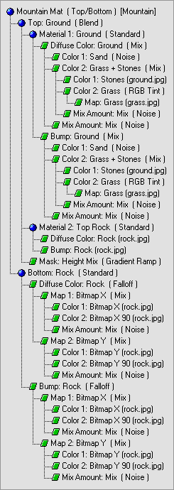- Select a free slot in material editor and choose a [Top/Bottom] material (Blend=5 Position=90). Name it "Mountain Mat".