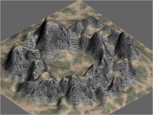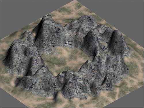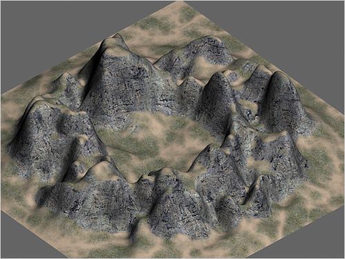 Notice than ground texture appears on top of mountains. We will fix that later. Now, let's work on rock material.